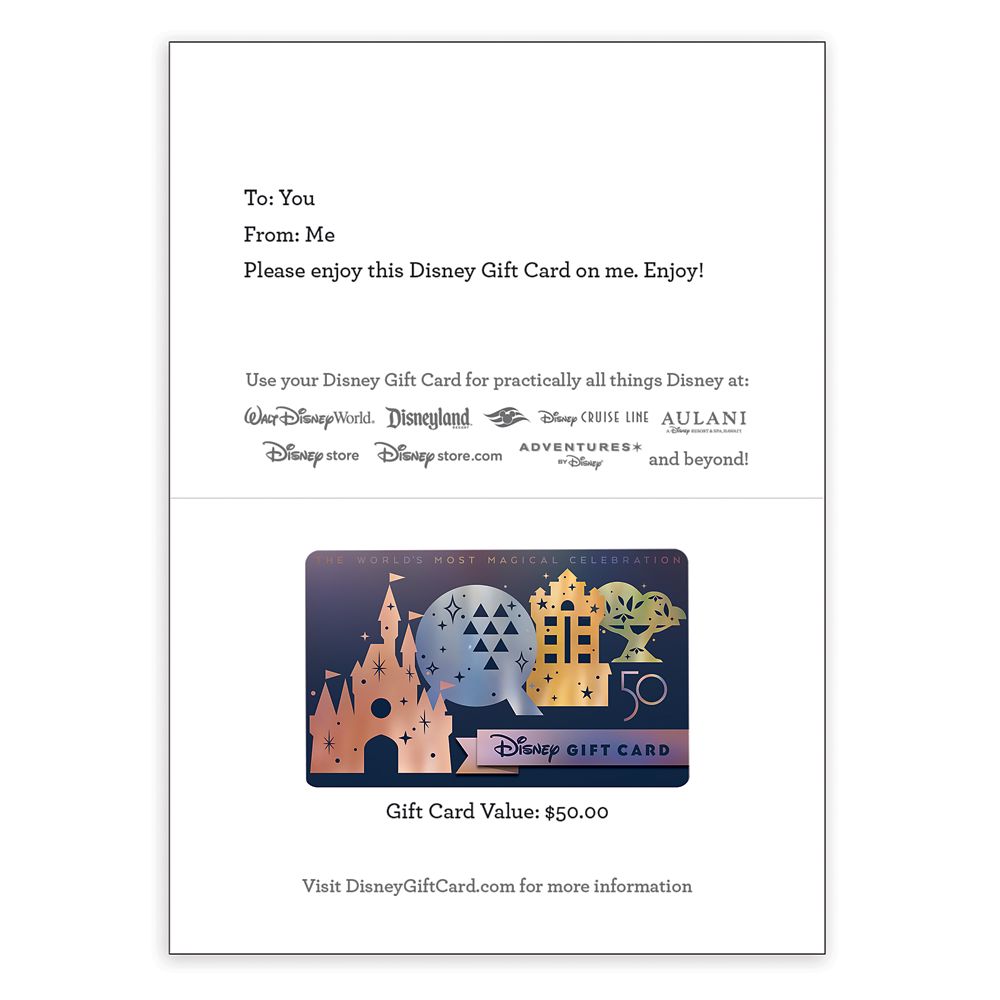 Walt Disney World 50th Anniversary Disney Gift Card Shopdisney
